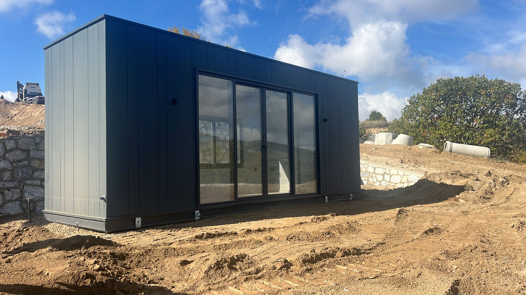 Proje kapsamında toplam 3 adet taşınabilir modül yapı, Bursa Orhaneli bölgesine sevk edilmiştir. Yapılar, enerji verimliliği ve yapısal dayanıklılığı ön planda tutularak hem yaşam alanı hem ofis kullanımı için uygundur. Estetik dış görünümü, kompakt planlaması ve fonksiyonelliğiyle modern yaşam ihtiyaçlarına pratik bir çözüm sunar.